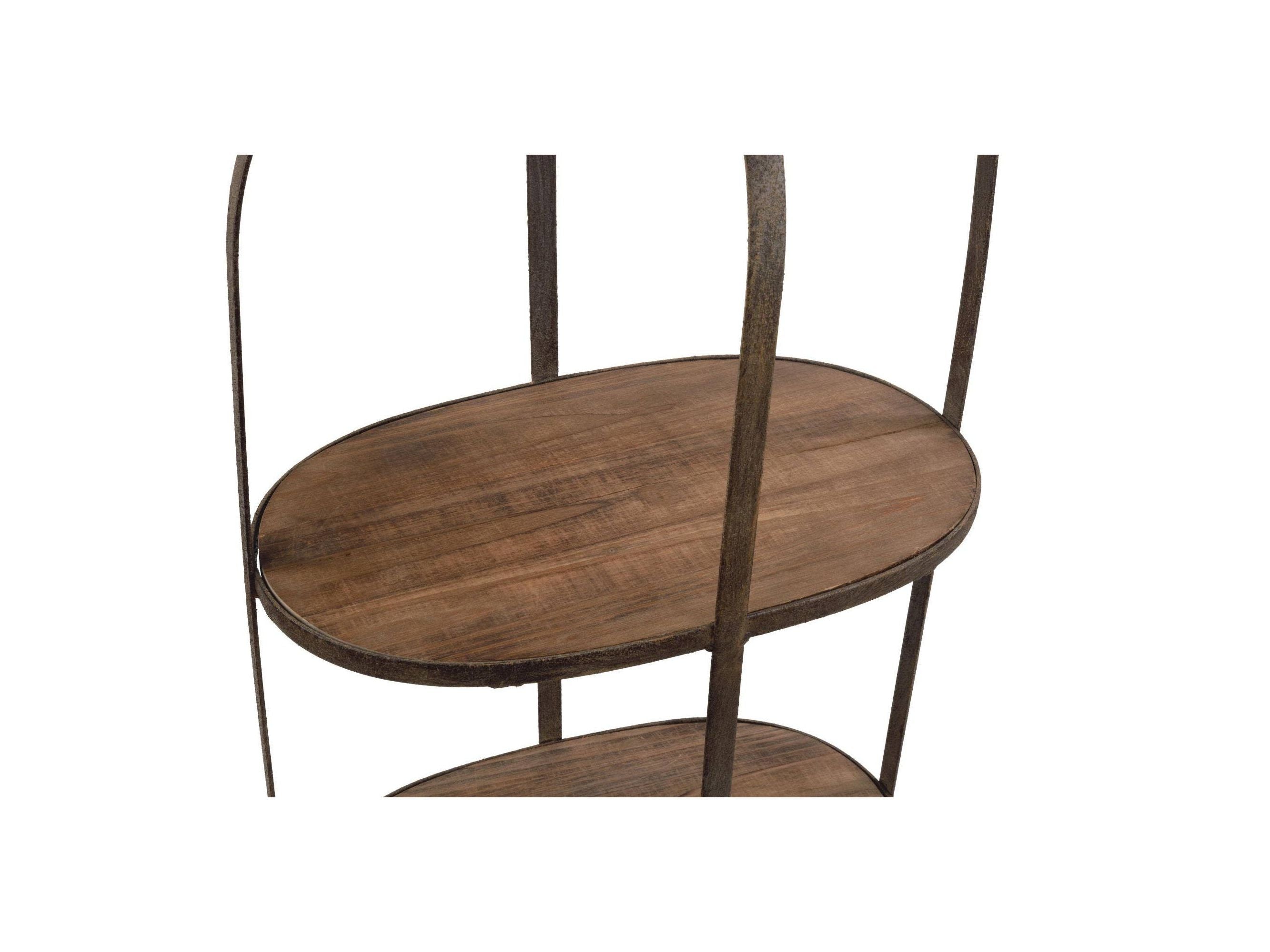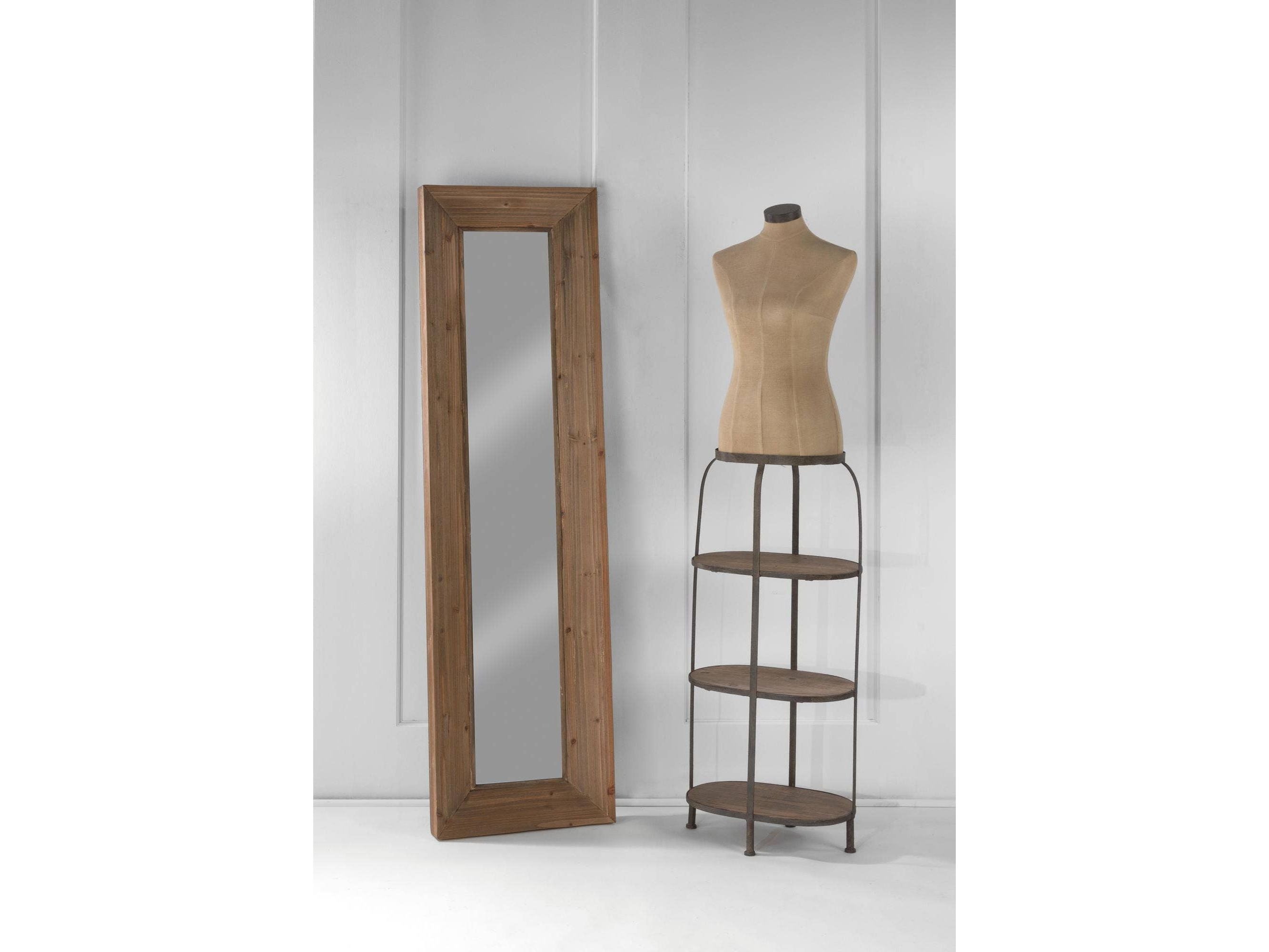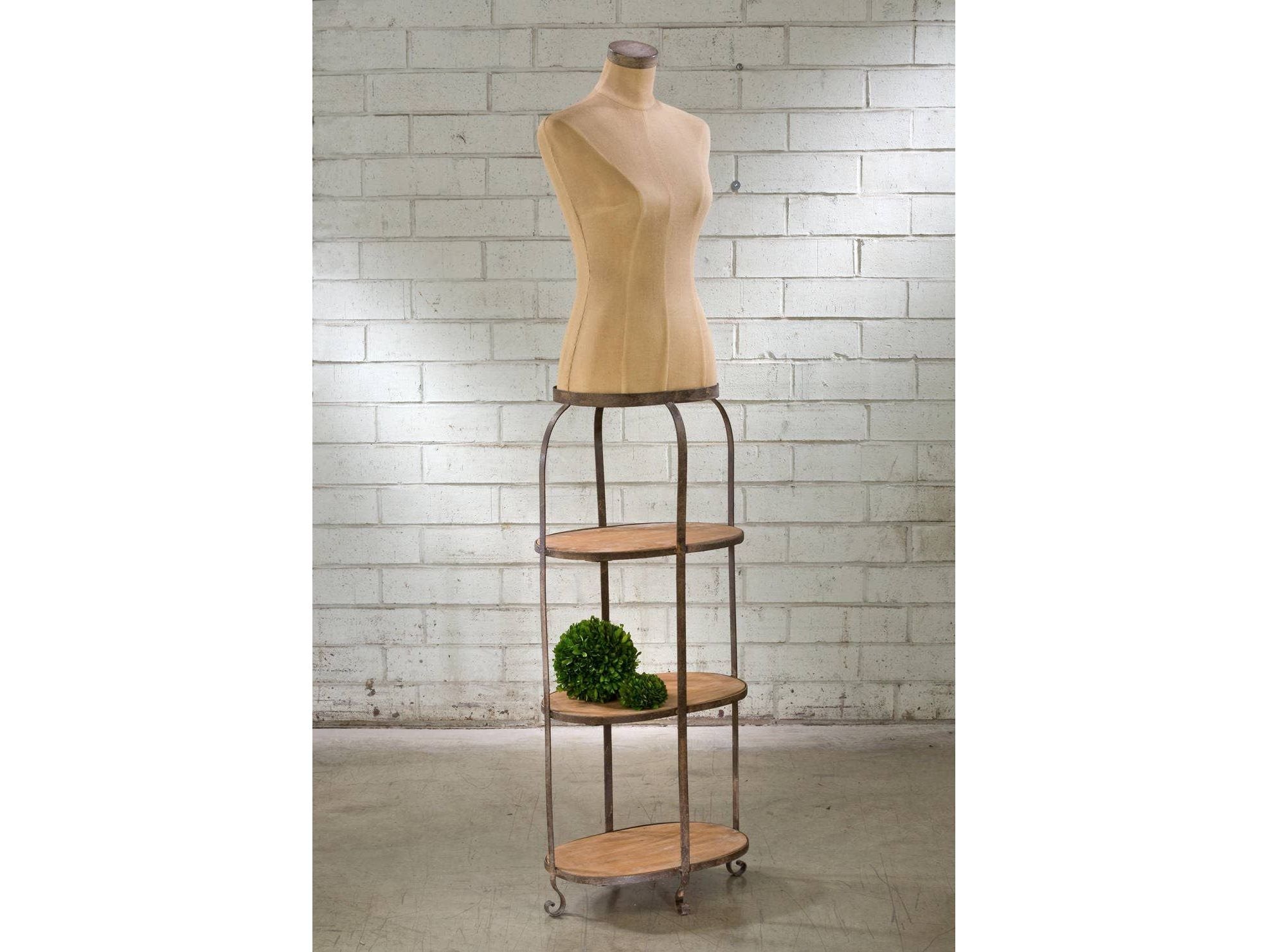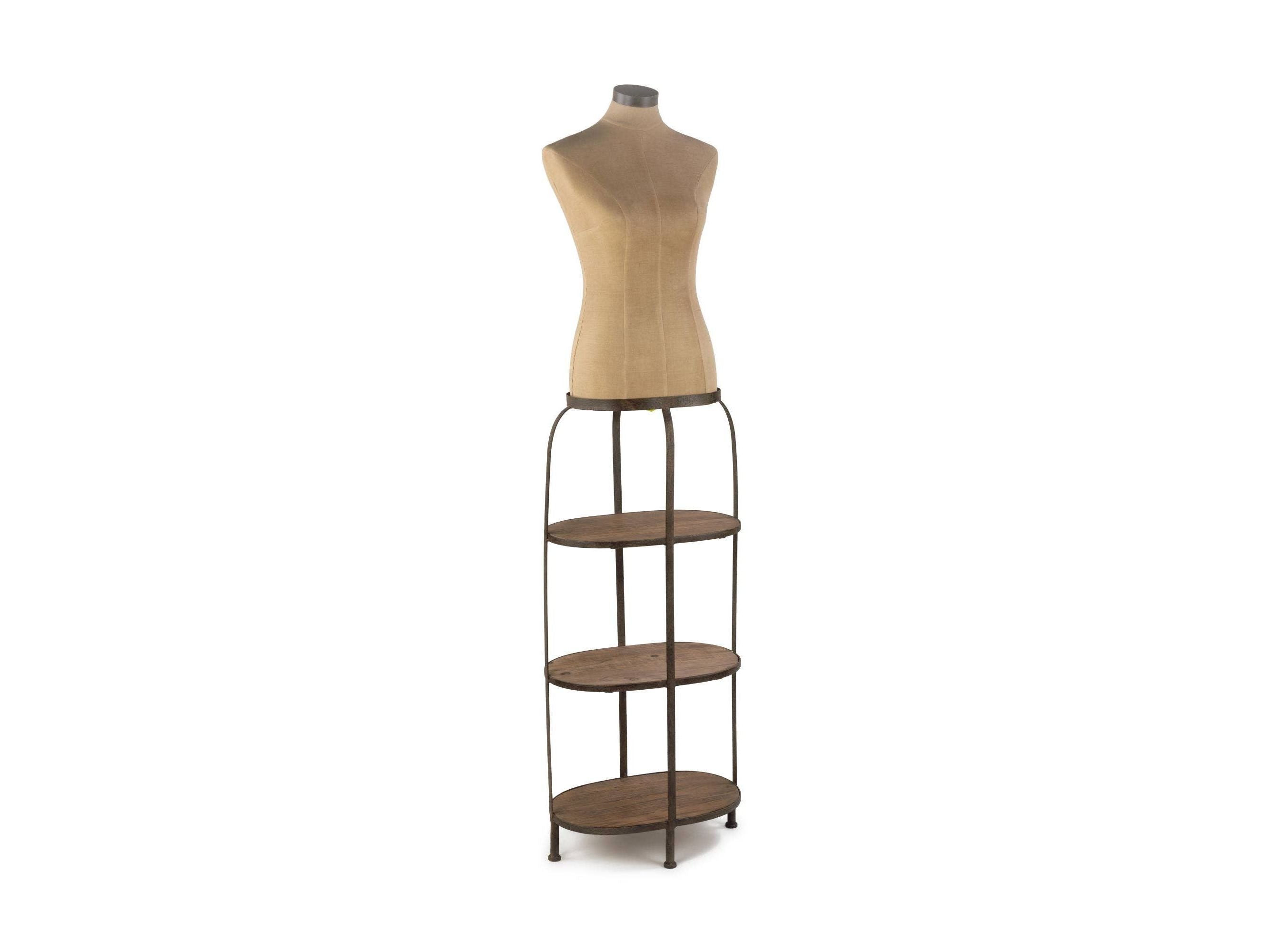-La forme de corps en fibre de verre repose sur 3 étagères en bois accentuées par un cadre en métal rustique