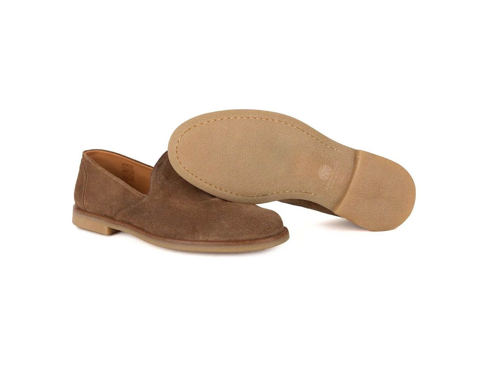 Les chaussons HOMER 89019 Farro allient élégance et confort grâce à leur cuir de veau suédé doux et naturel. Non doublés, ils offrent une sensation légère avec une doublure en cuir de veau naturel. La semelle intérieure en cuir respirant et flexible assure un confort optimal, tandis que la semelle extérieure en caoutchouc crêpe naturel garantit une excellente adhérence. Fabriqués à 100 % en Italie, ces chaussons marron sont le choix parfait pour un style raffiné et un bien-être quotidien.
