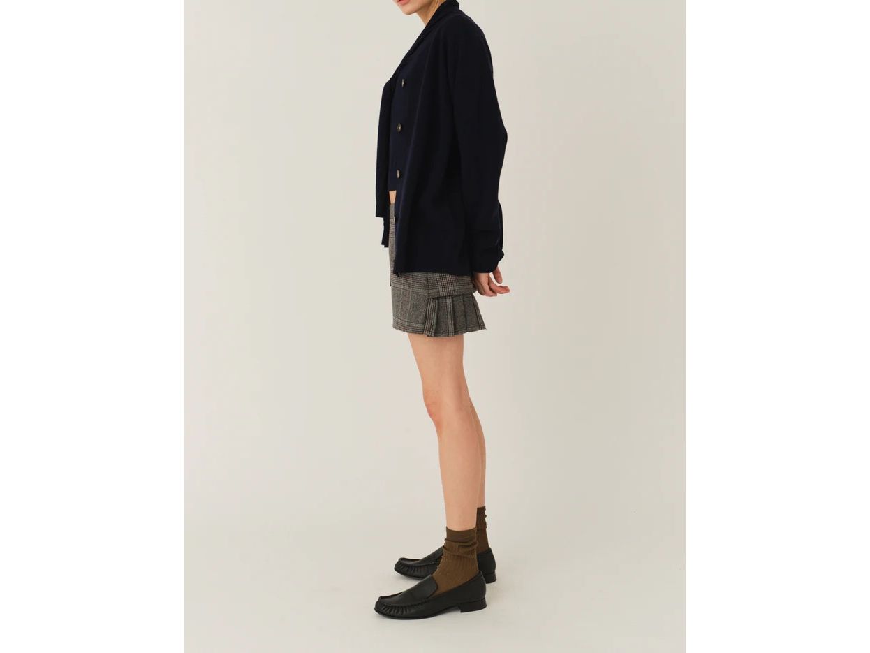 Cette jupe mini Taylor en motif check gris allie élégance et modernité avec une découpe subtile à l'ourlet. Confortable grâce à sa laine mélangée, elle sublime vos tenues pour un style raffiné.