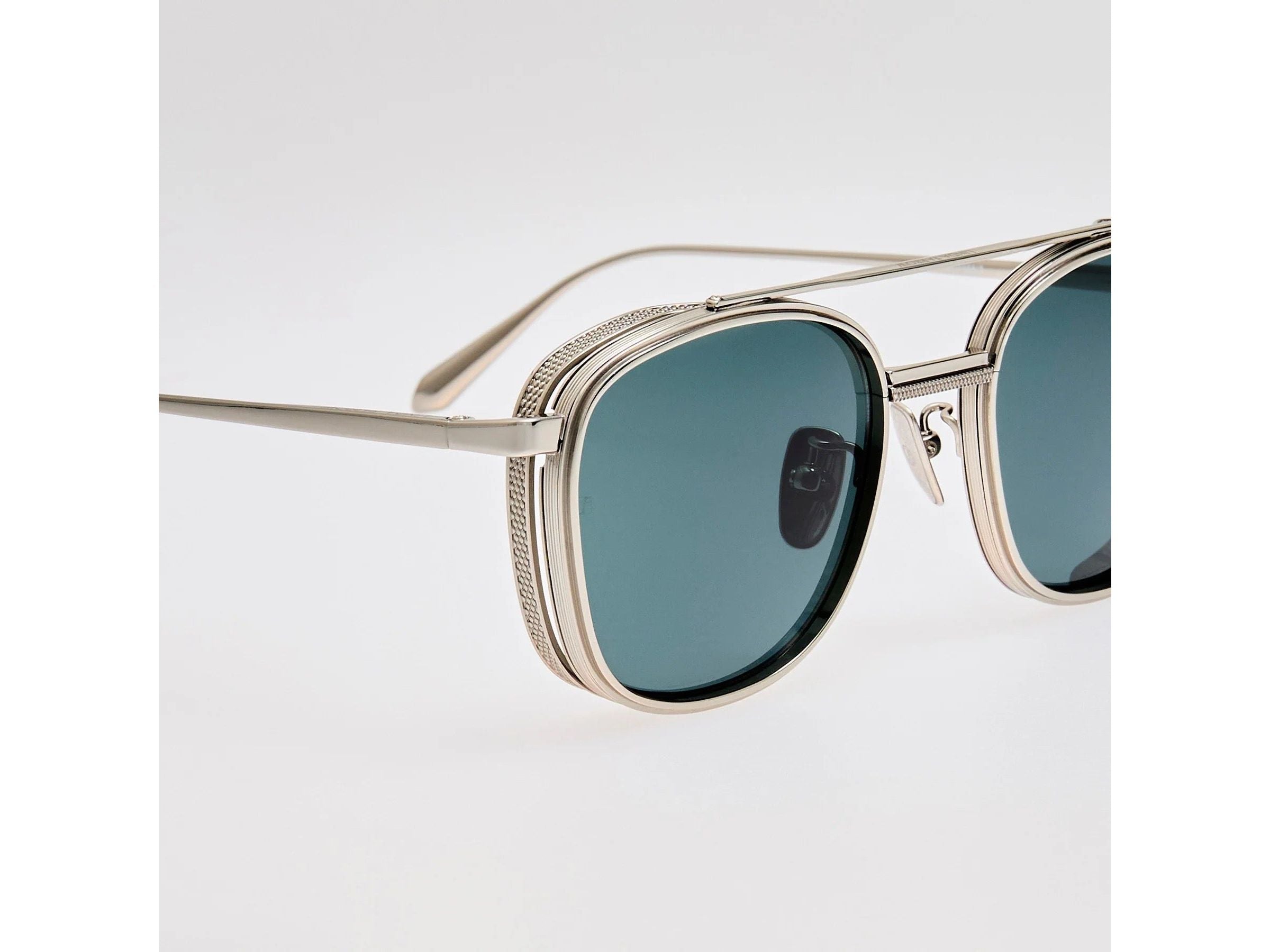 Découvrez les lunettes de soleil Varo, alliant élégance et robustesse grâce à leur monture carrée en titane japonais pur plaqué or 22 carats. Équipées de verres verts profonds offrant une protection UV totale, elles garantissent une vision claire et protégée. Les plaquettes de nez en titane ajustables assurent un confort optimal et un maintien parfait tout au long de la journée. Fabriquées au Japon, ces lunettes sont le choix idéal pour allier style raffiné et durabilité.
