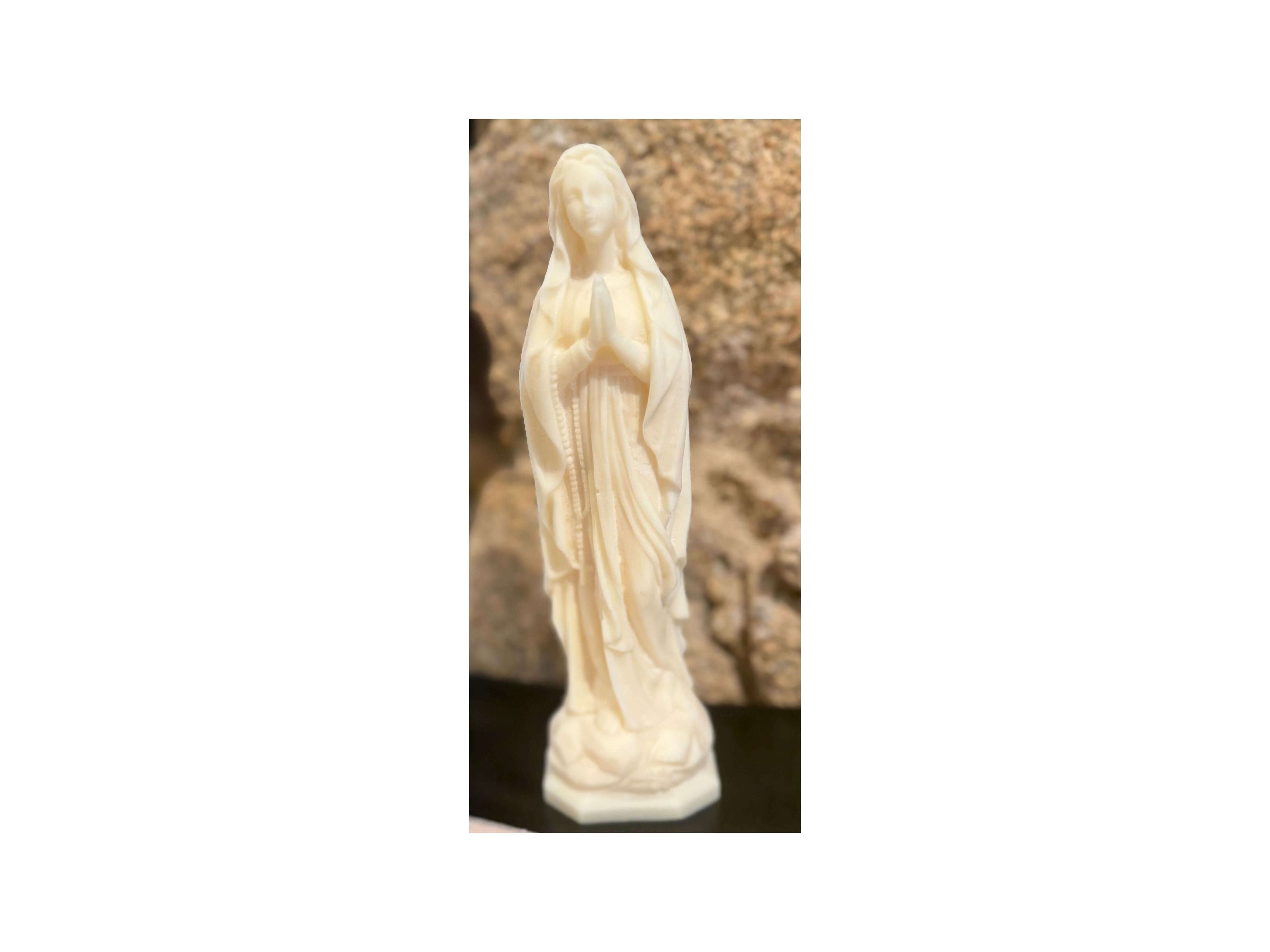 Découvrez la Vierge Notre dame de lourdes, une magnifique décoration en cire naturelle aux senteurs envoûtantes d'encens de la marque Corsica Essence. Haute de 23cm et large de 6,5cm, cette statue apportera une touche de paix et de beauté à votre intérieur. Faites l'expérience de la foi avec cet objet unique.