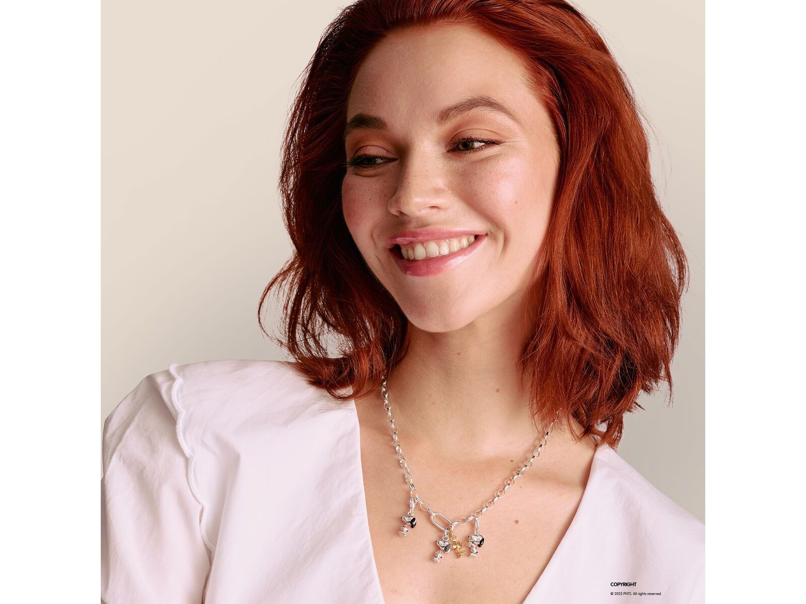 Le pendentif charm Snoopy Pavé Peanuts Connect allie élégance et originalité. Confectionné en argent sterling 925 recyclé, il se pare d’oxydes de zirconium noirs scintillants qui subliment le célèbre beagle avec un effet pavé étincelant. Le détail du foulard rouge en émail apporte une touche de couleur raffinée, faisant de ce charm une pièce unique et éclatante pour enrichir votre collection Peanuts avec style et glamour