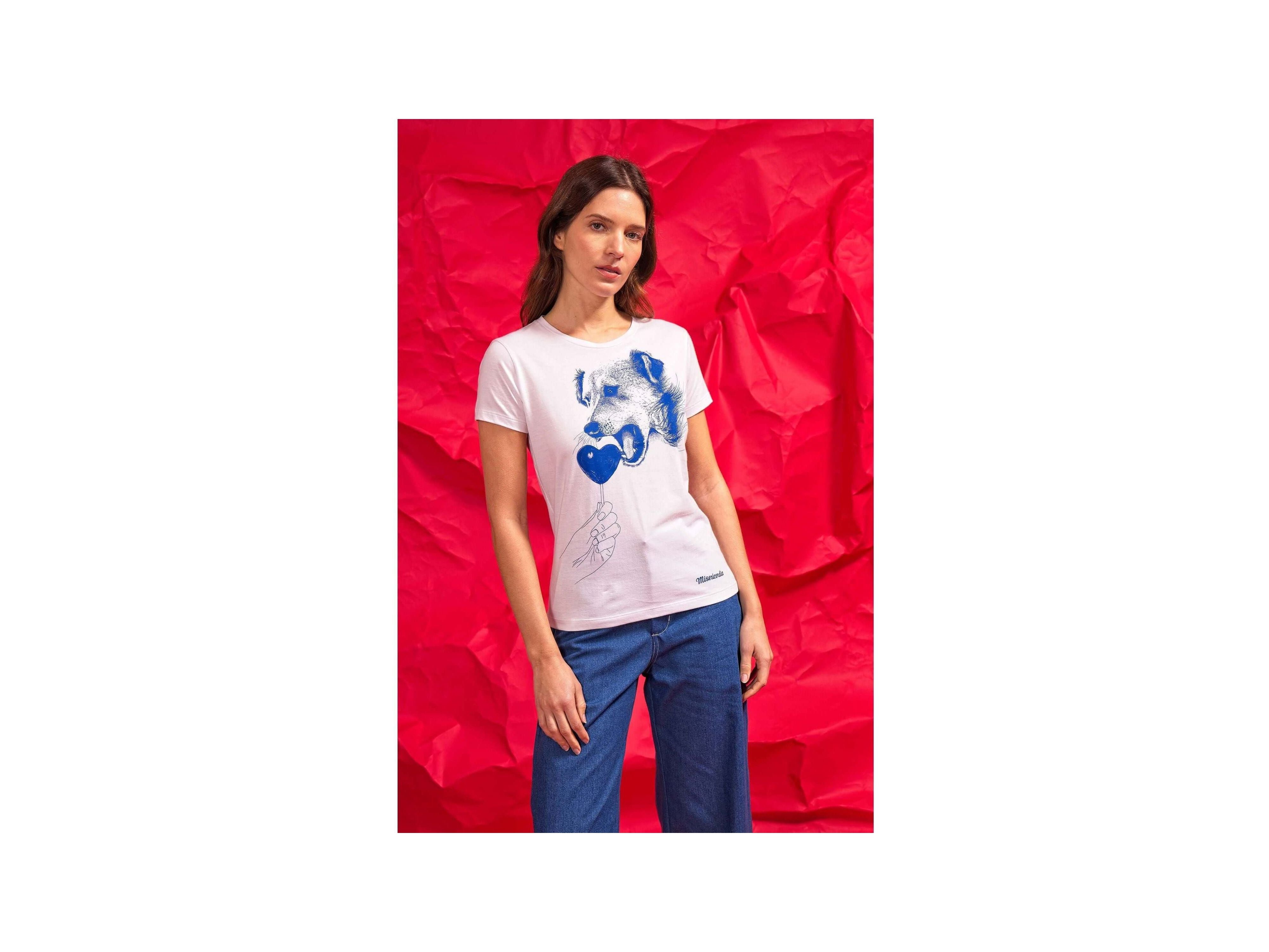 T-SHIRT BLANC EN COTON AJUSTÉ IMPRIMÉ CHIEN