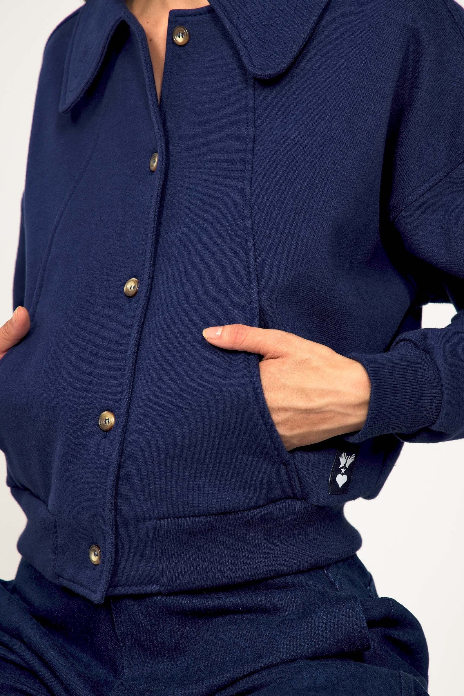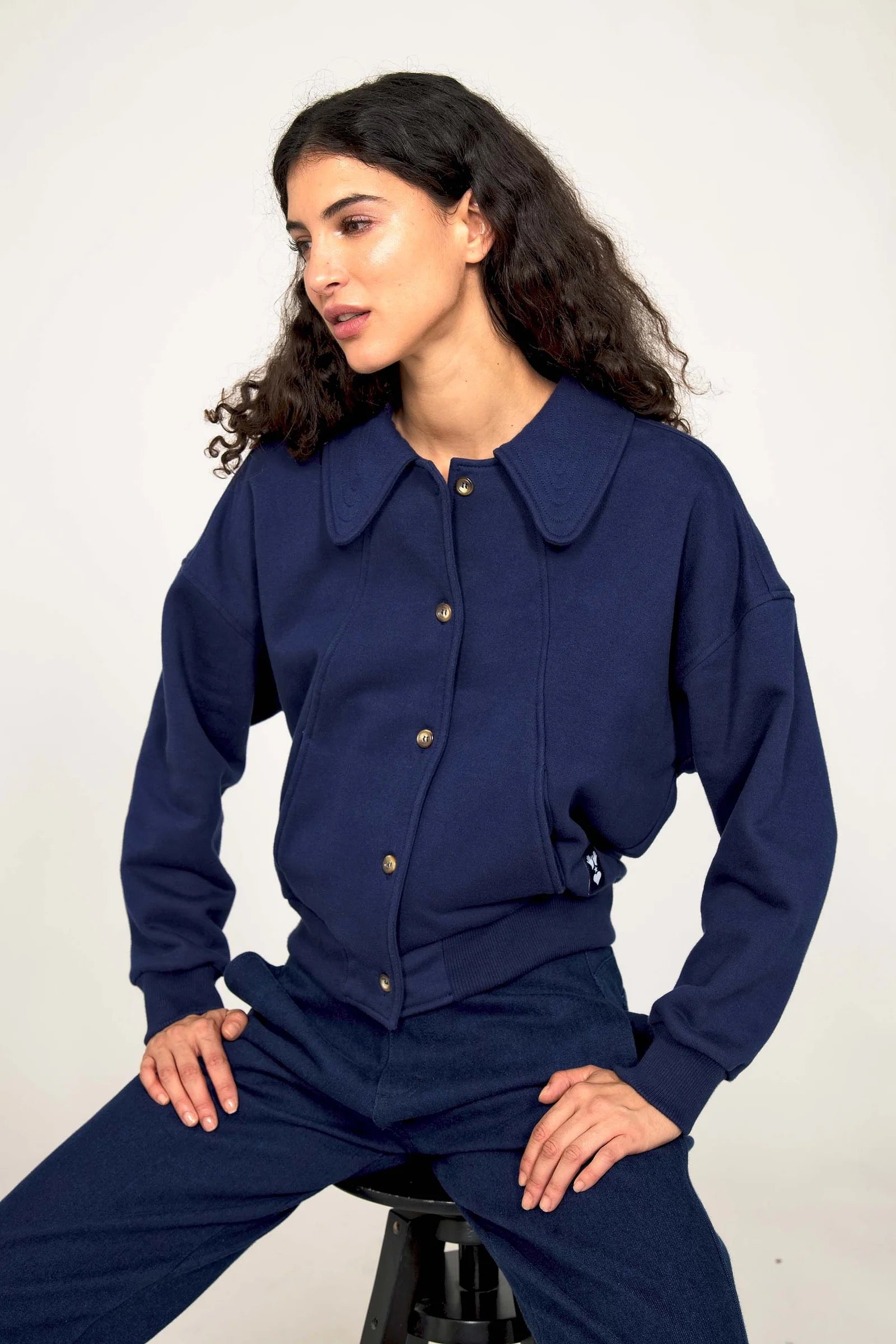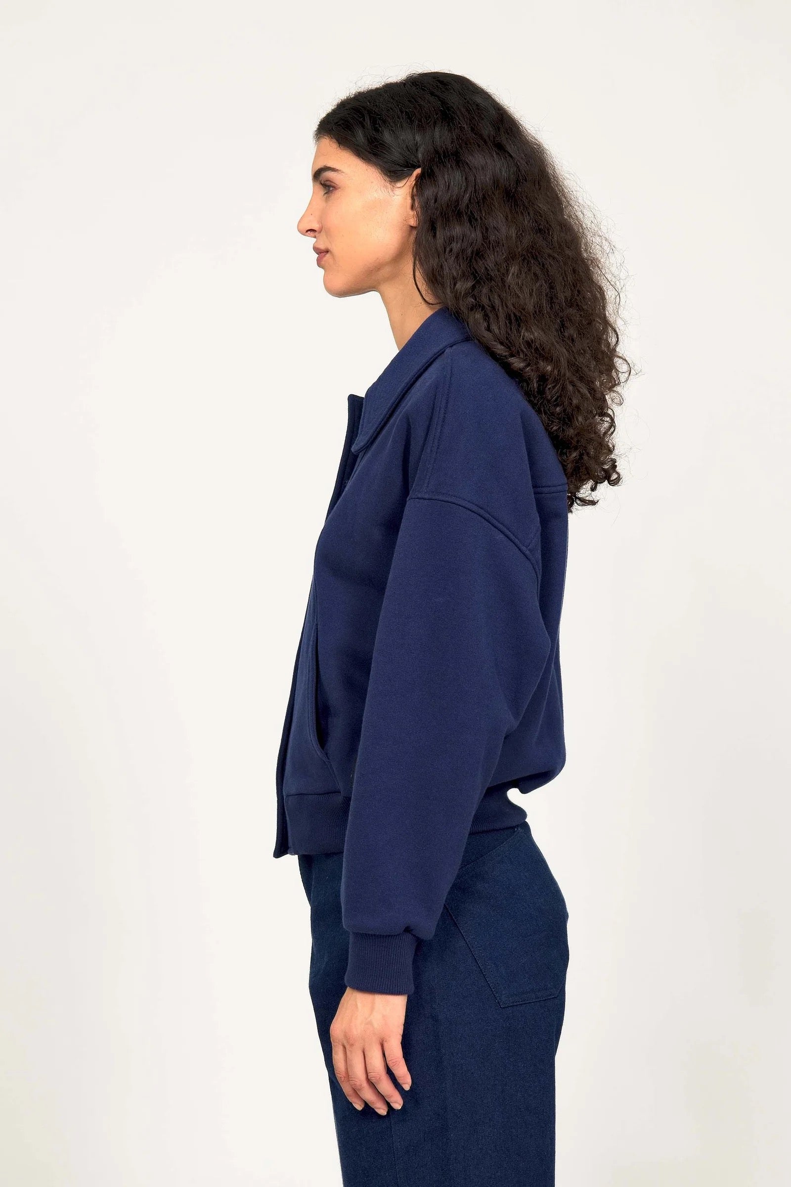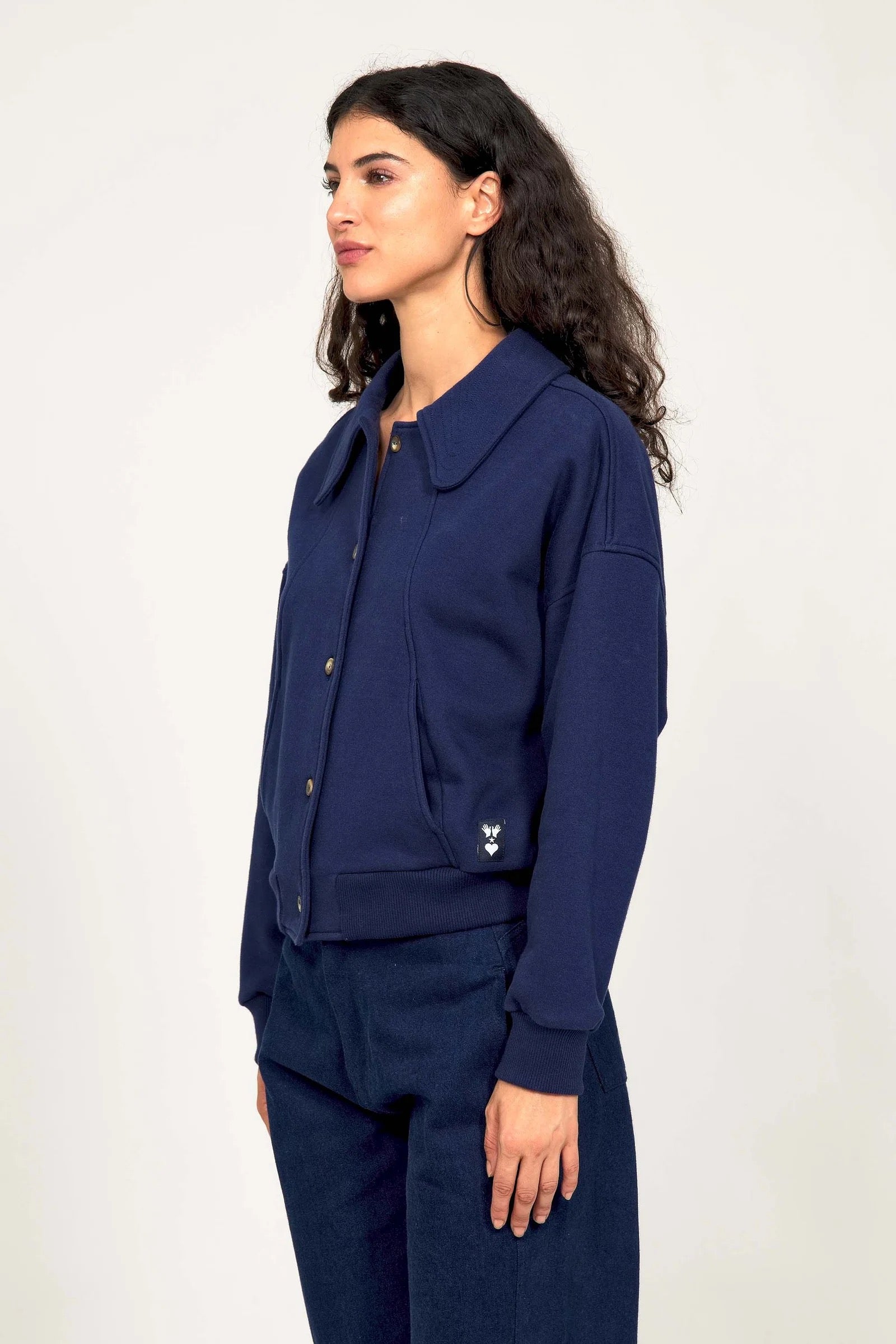 VESTE TEDDY DATIVA BLEU OUTREMER EN MOLLETON GRAND COL
