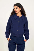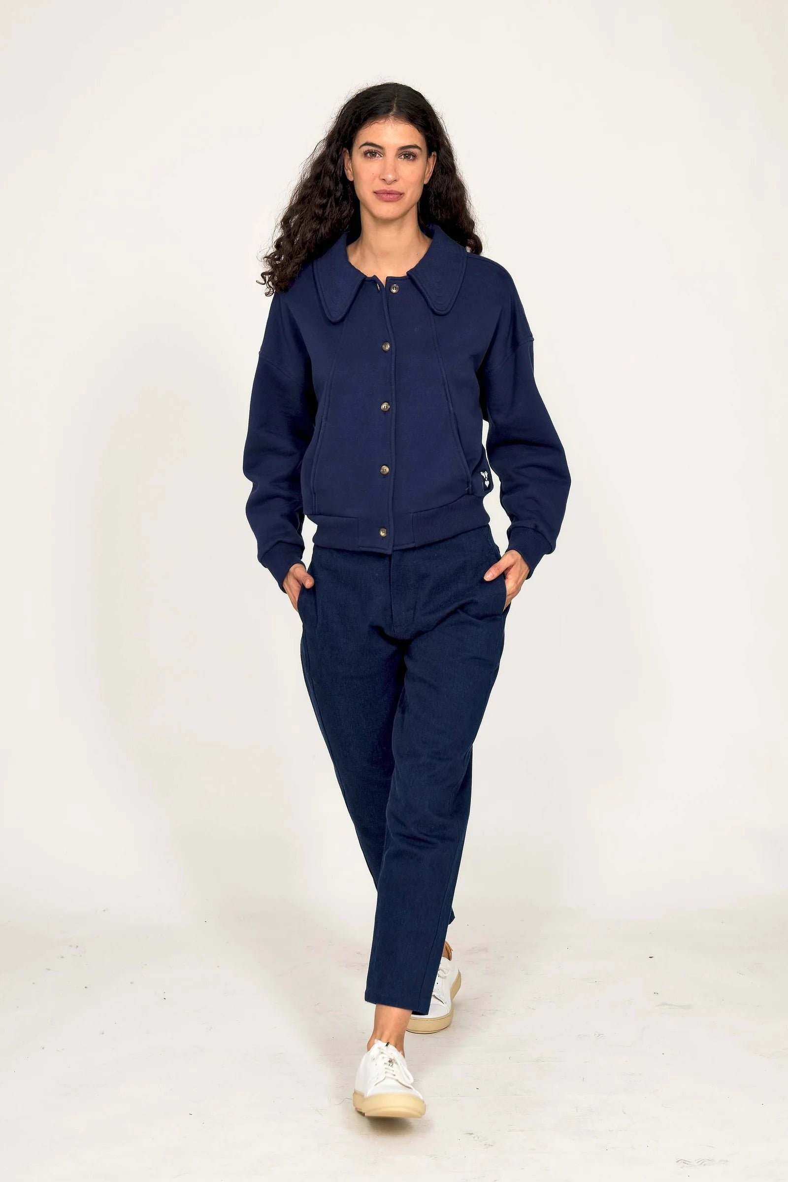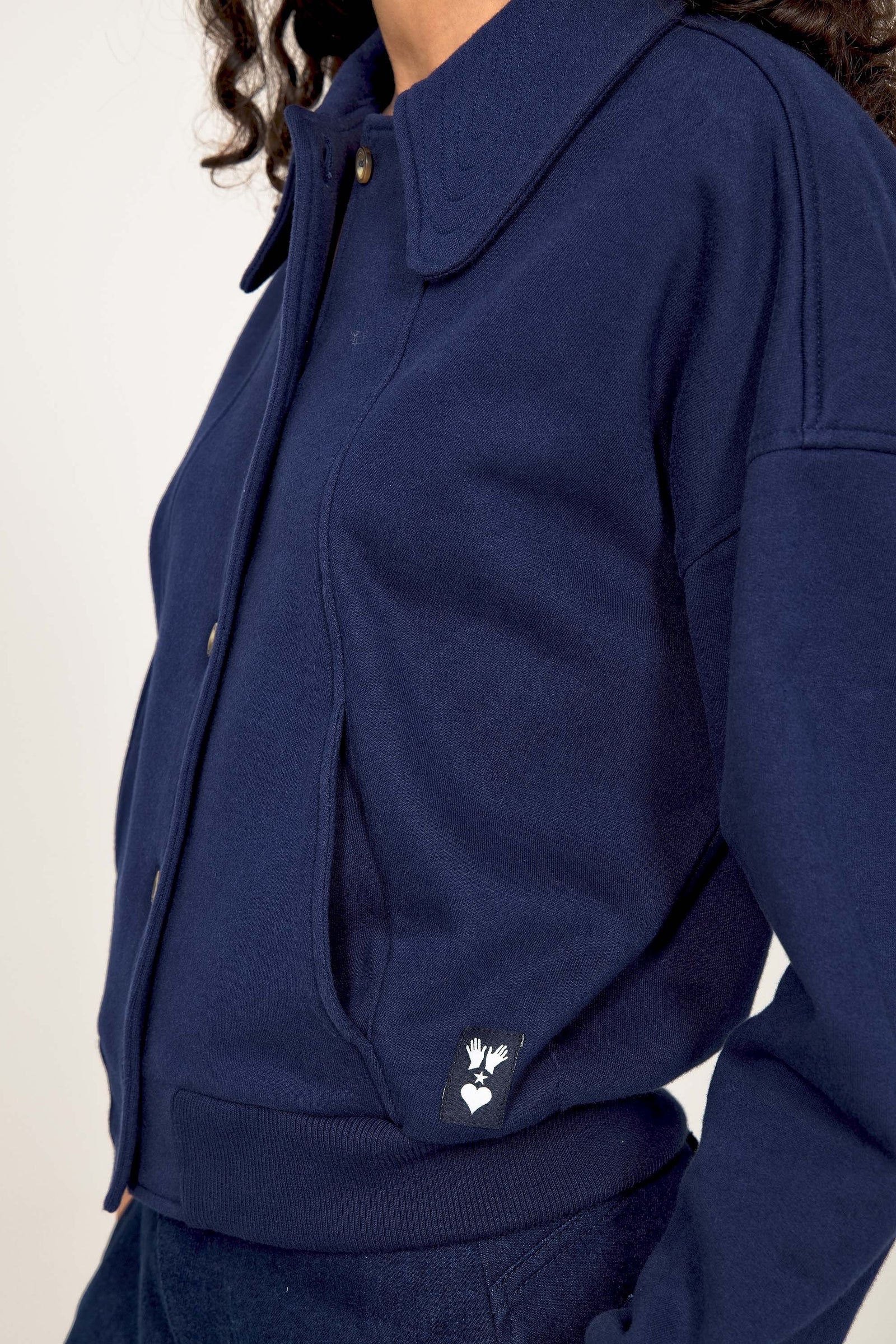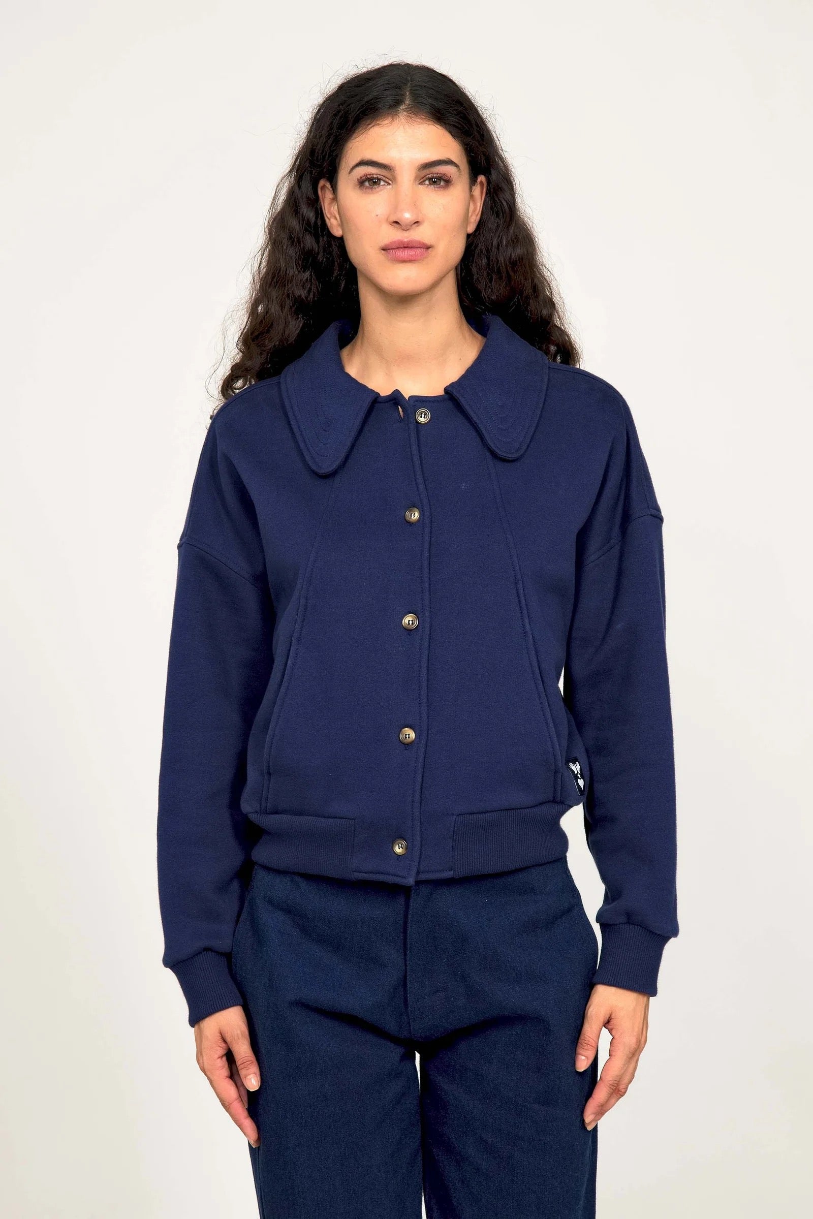 VESTE TEDDY DATIVA BLEU OUTREMER EN MOLLETON GRAND COL